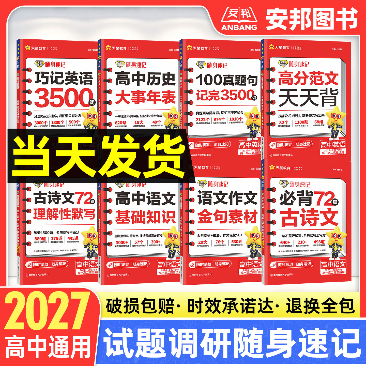 2027版试题调研随身速记高中语文必背古诗文72篇理解性默写历史大事年表基础知识英语词汇高考单词书3500词高分范文天天背作文素材