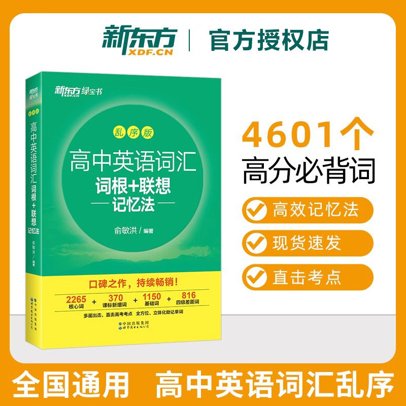 【赠视频课程】新东方高中英语词汇词根+联想记忆法 乱序版 高中高三备考高考单词书 核心超纲词汇绿宝书籍