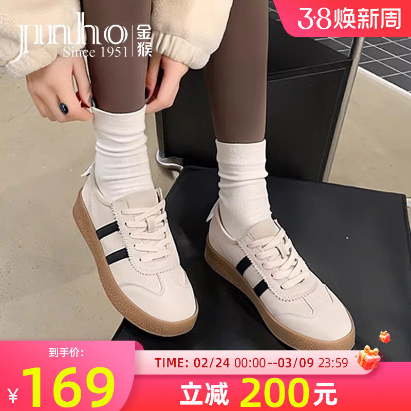 金猴女鞋2025春秋季新款休闲运动鞋德训鞋平底板鞋真皮小白鞋女