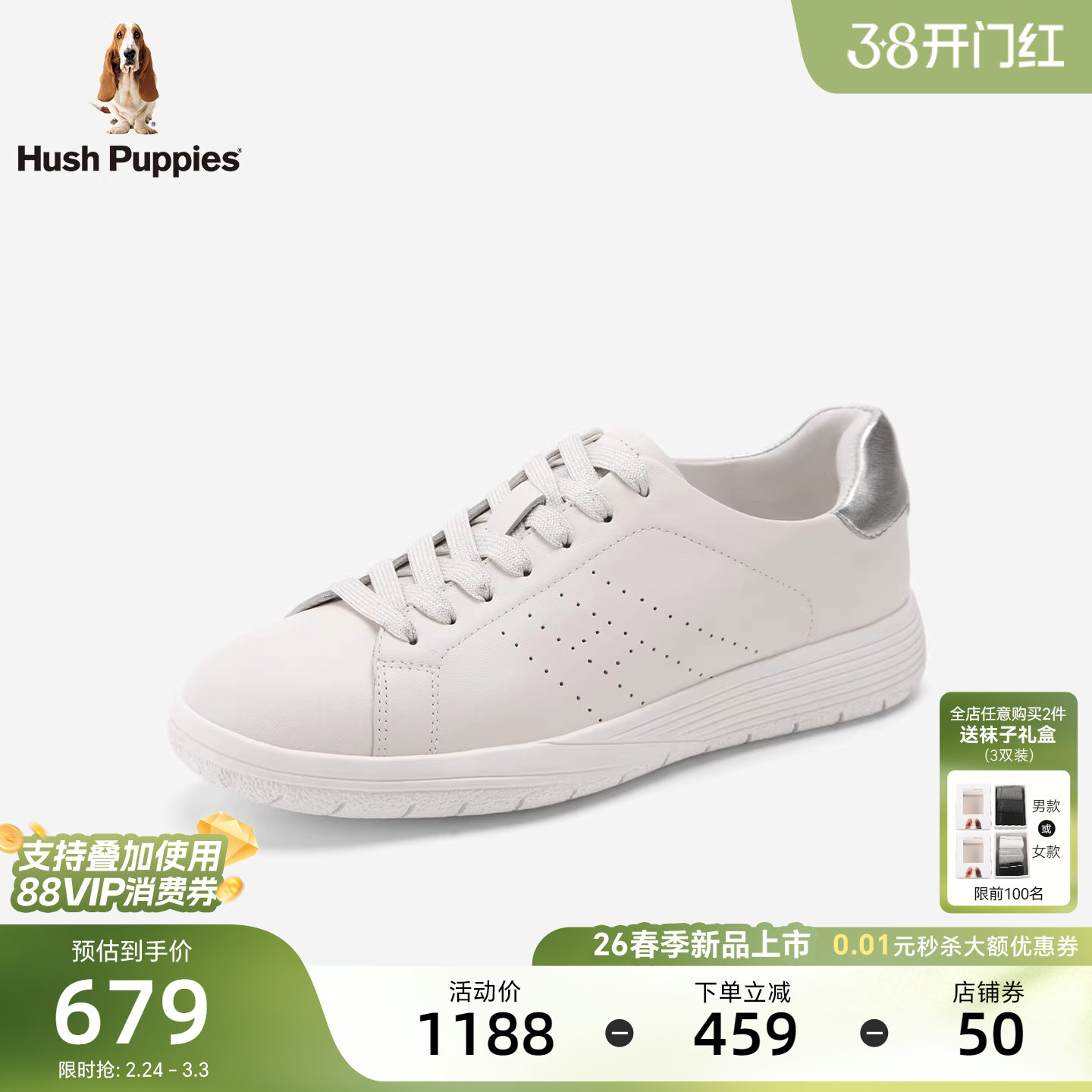 暇步士休闲板鞋女2026春新款轻便简约舒适平底透气真皮百搭小白鞋