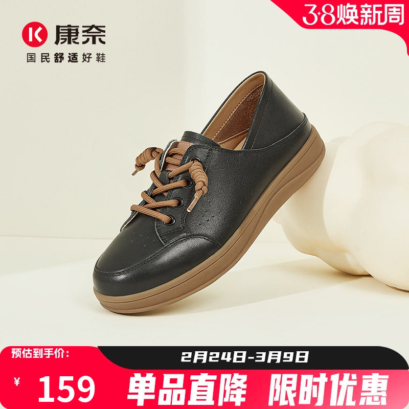 康奈时尚百搭休闲板鞋女平底透气真皮透气俩穿单鞋女小皮鞋阿甘鞋