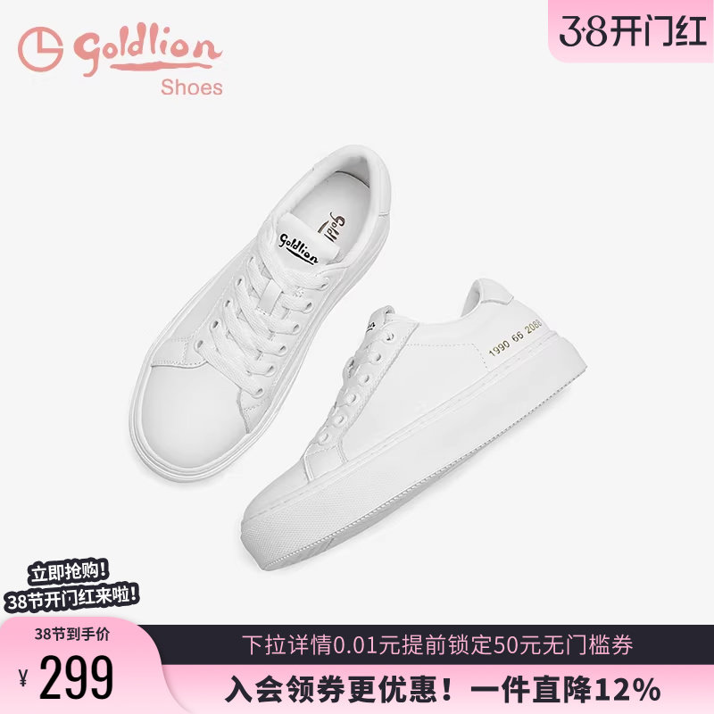 金利来平底小白鞋女春秋新款女鞋真皮休闲鞋简约白色皮面系带板鞋