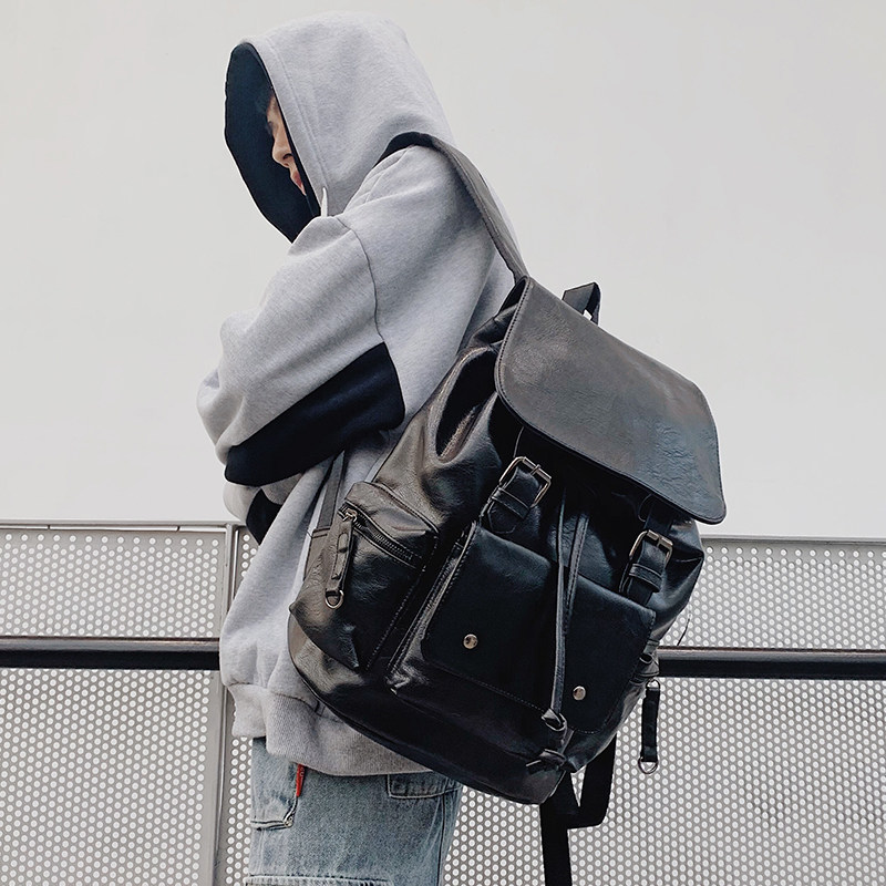 潮牌皮质双肩包男士大容量英伦PU电脑包大学生背包韩版休闲书包女