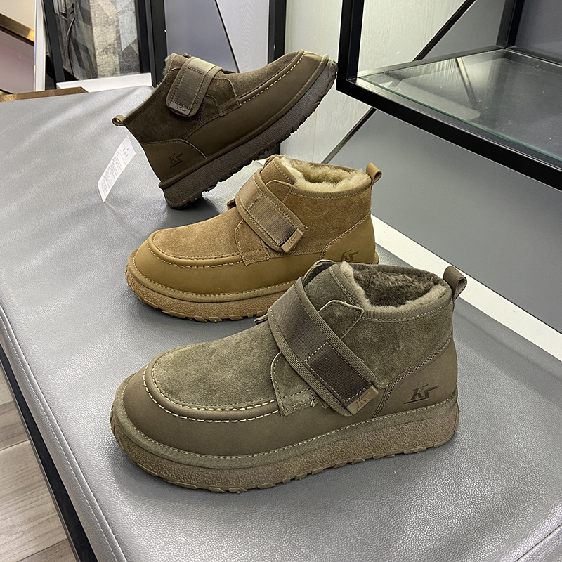 【娜家鞋店】2025冬季真皮羊毛搭扣男雪地靴保暖大头鞋面包鞋棉鞋