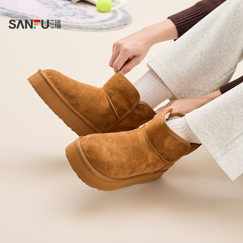 三福男雪地靴冬季简约轻户外中筒毛毛鞋保暖靴子男鞋845936