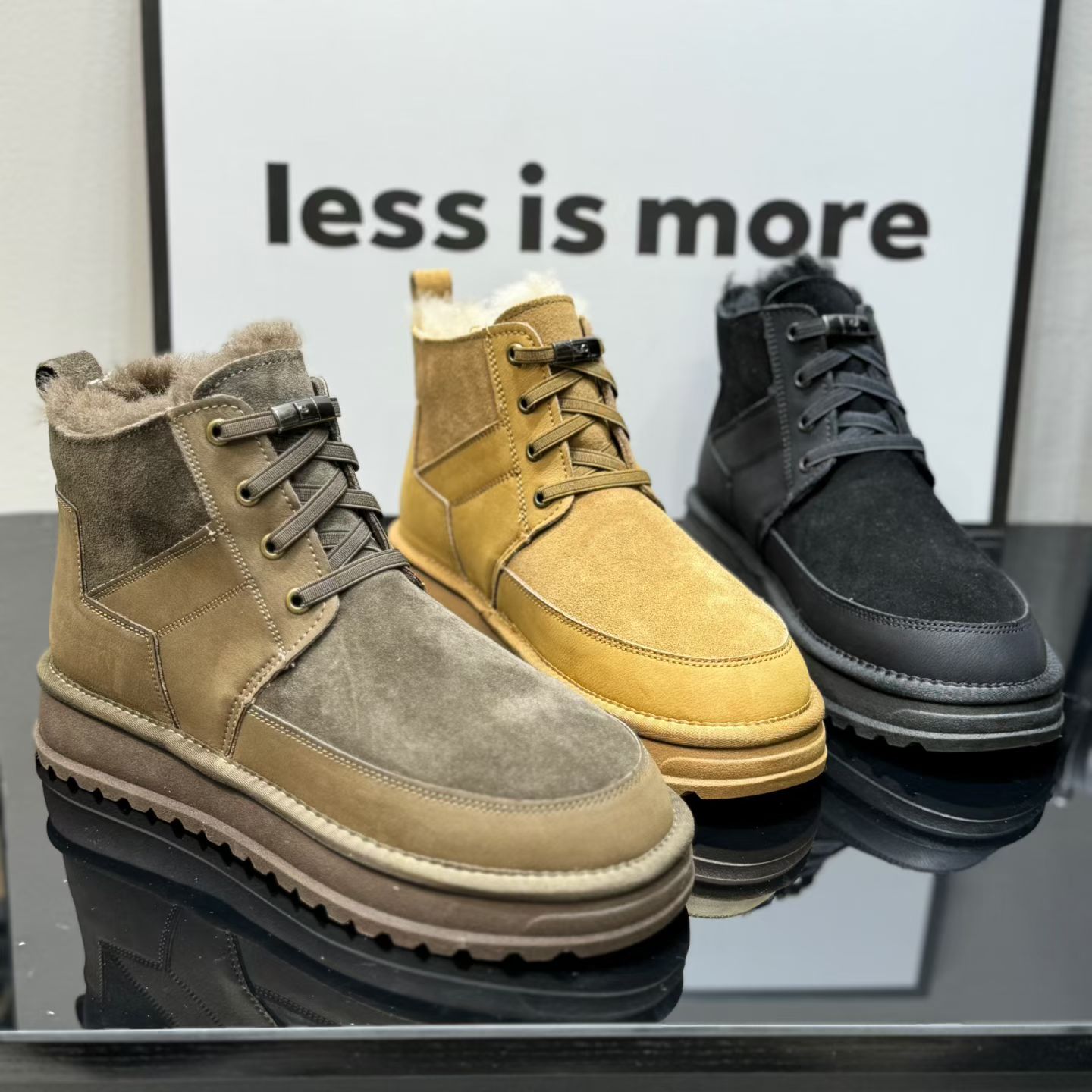 皮毛一体男雪地靴2025新款加绒厚底全羊毛系带短筒冬防滑保暖棉鞋