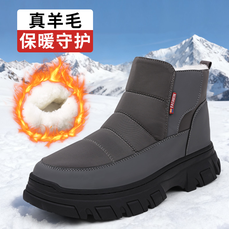 真羊毛男雪地靴冬季加绒保暖防滑棉靴防寒加厚老北京棉鞋厚底防风