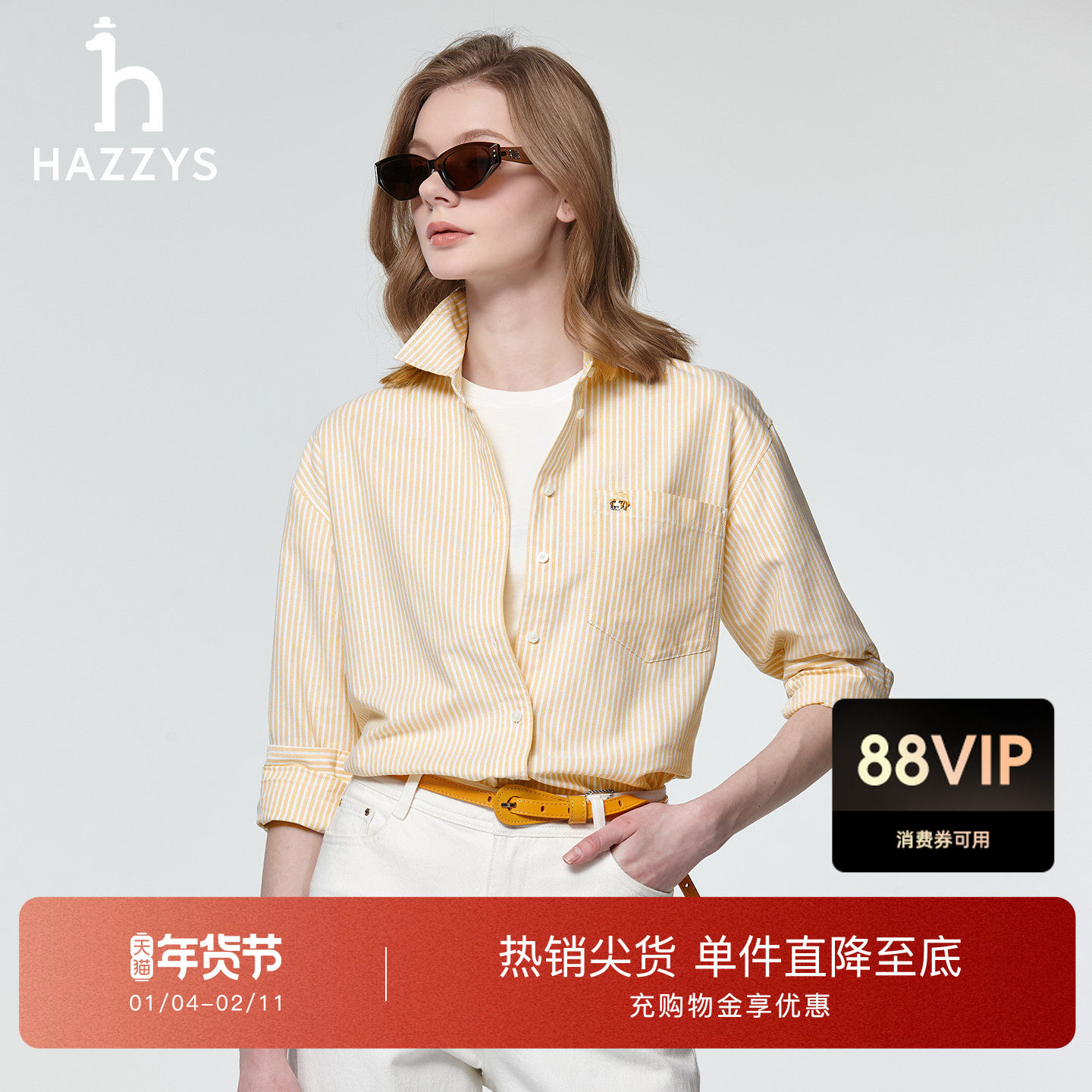 Hazzys哈吉斯长袖衬衫女春季条纹牛津纺衬衣时尚休闲宽松上衣外套