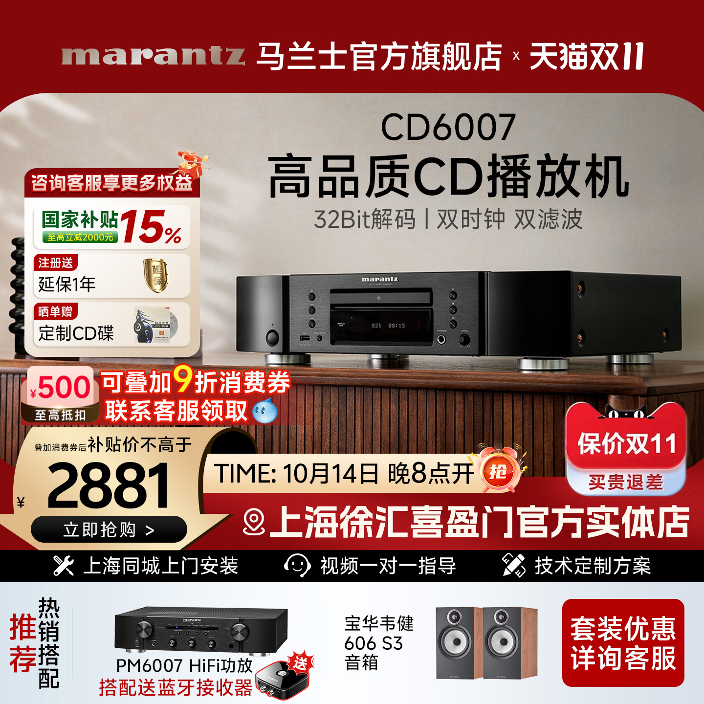 Marantz/马兰士CD6007播放器专业家用纯CD机发烧HiFi音响套装