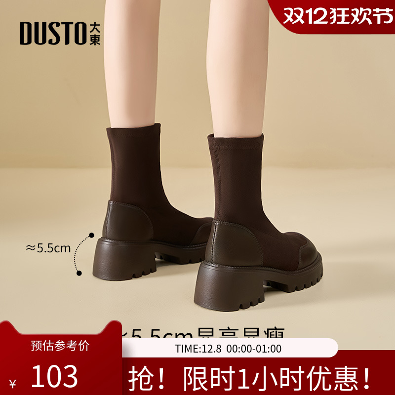达芙妮短靴女2025新款高跟鞋冬季粗跟瘦瘦靴厚底马丁靴子增高袜靴