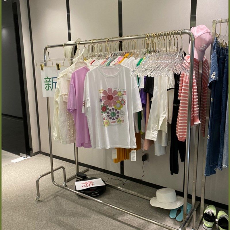服装店挂衣架不锈钢展示架落地式移动衣服架带轮男女童装店单杠架