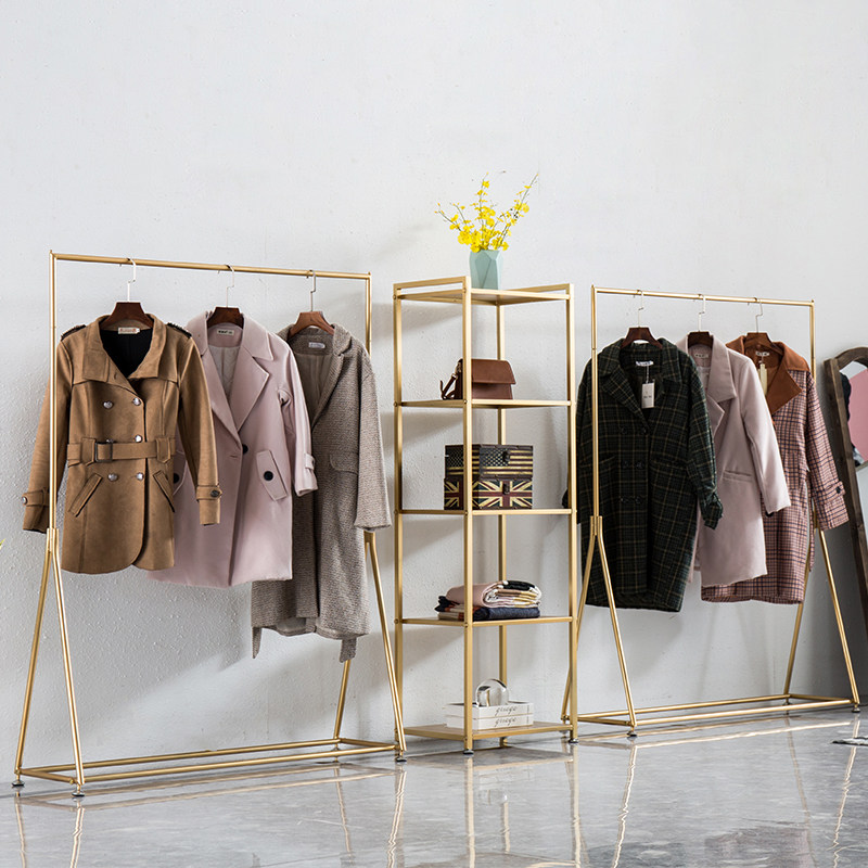 铁艺服装展示架落地式服装店挂衣架男女装店货架简约衣服架子金色