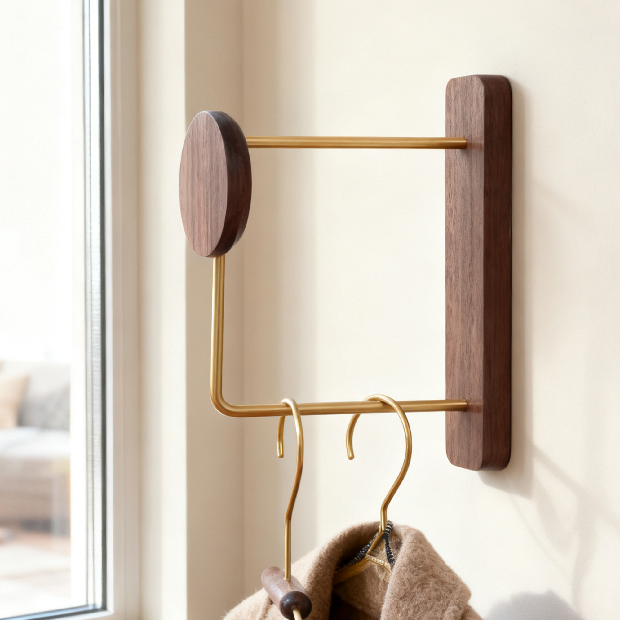 衣架置物架阳台收纳架服装店挂衣架壁挂墙上胡桃木晾衣架收纳神器