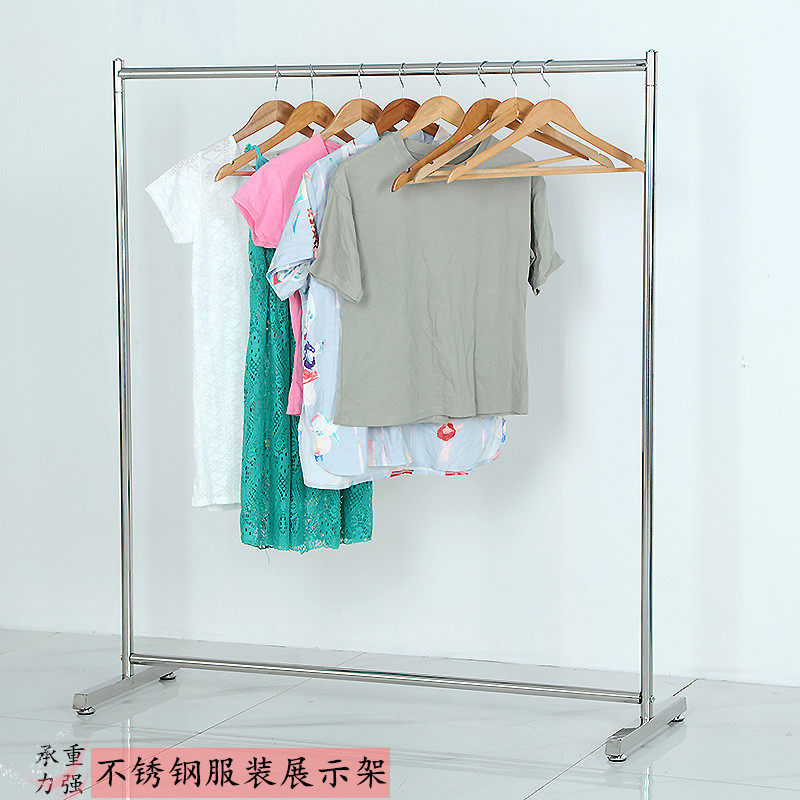 不锈钢亮面服装店挂衣架阳台落地式服装展示架落地式中岛架可移动