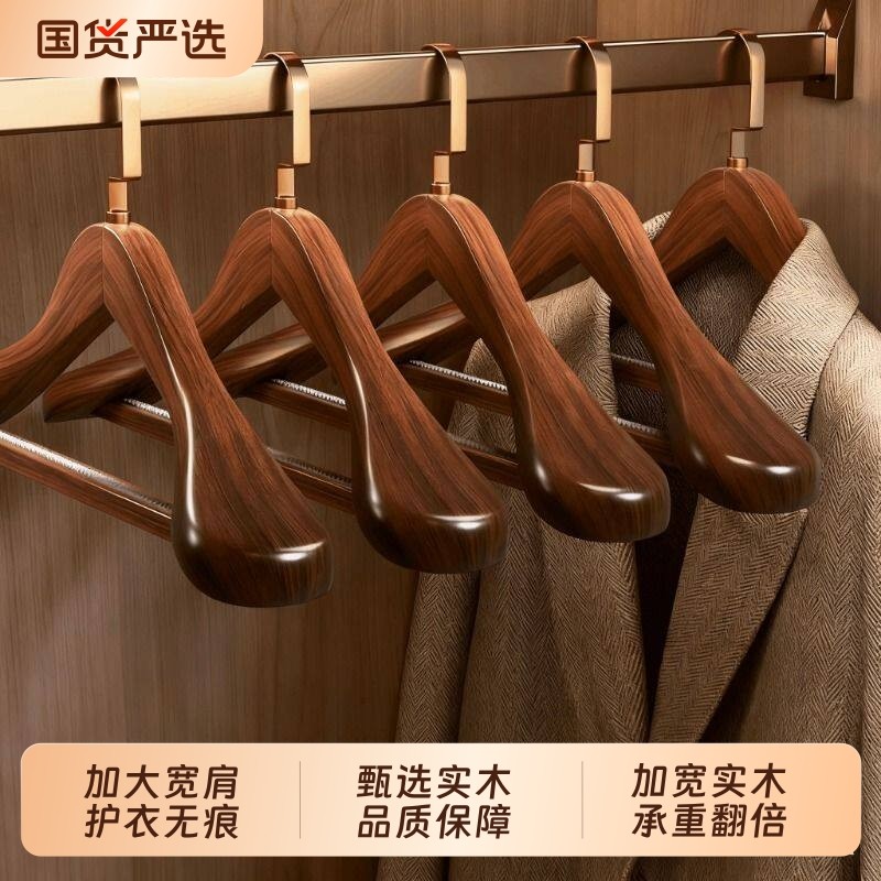 实木宽肩衣架家用西装大衣专用高级木质衣撑酒店服装店挂衣架防滑