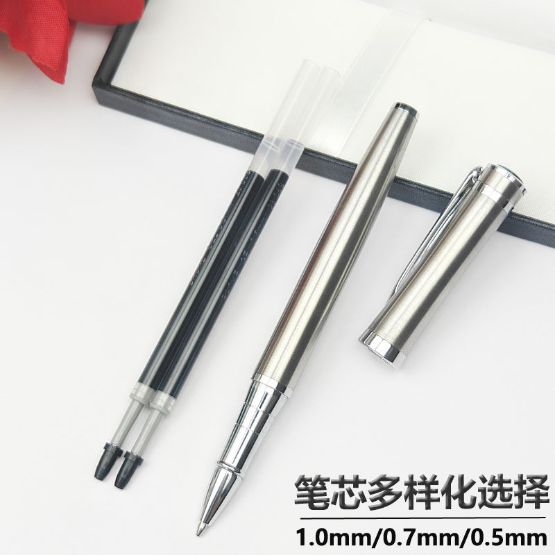 1.0mm金属中性笔不锈钢签字笔刻字LOGO黑色水笔0.5笔芯0.7子弹头