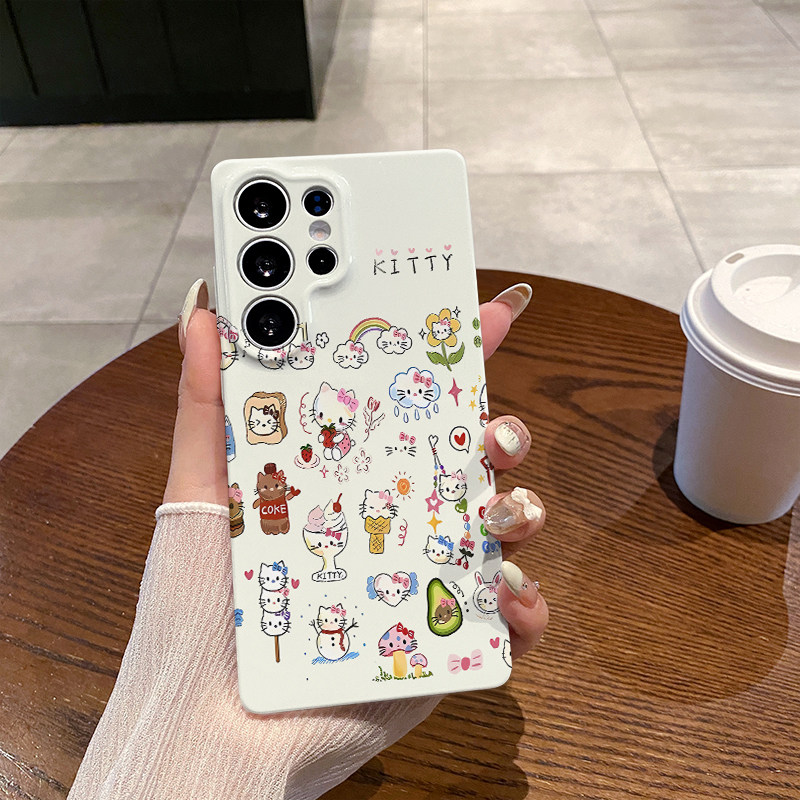 冰淇淋哈喽猫 适用三星S6Ultra手机壳S25新款小众菲林S24Ultra亮面保护套S23全包边S22Ultra新款简约耐脏硬壳