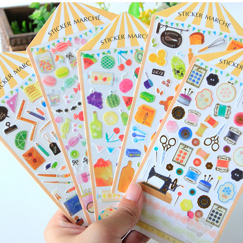 清仓日式水彩集市手账贴 和纸烫金diy装饰水果鲜花糖果贴蘑菇蔬菜