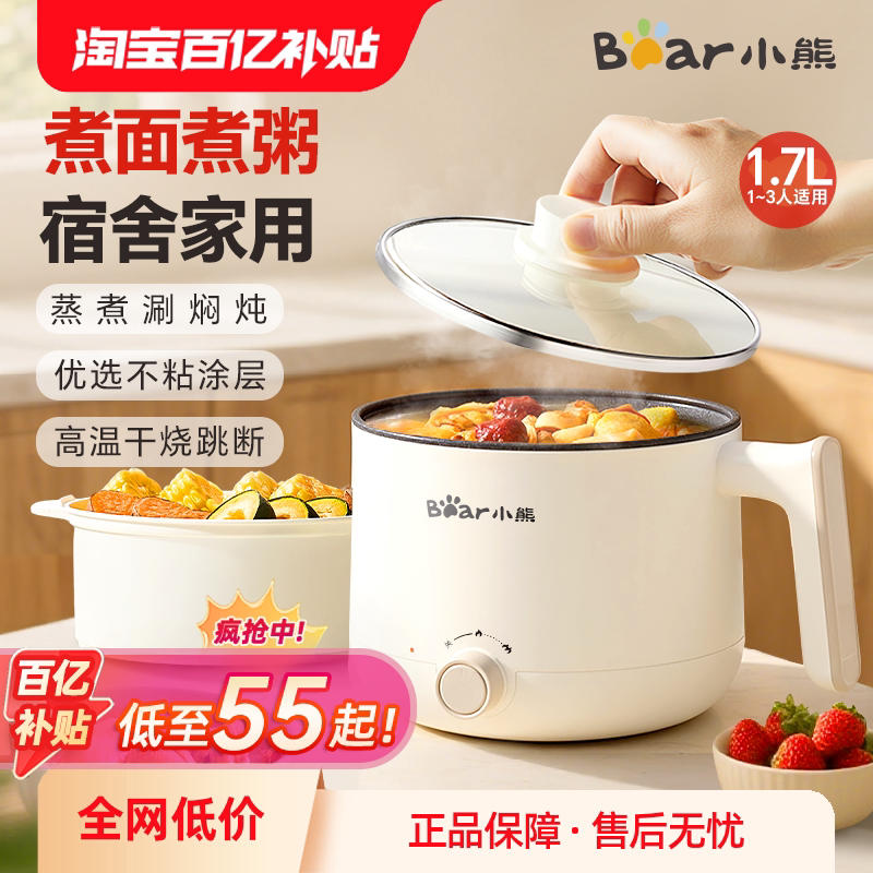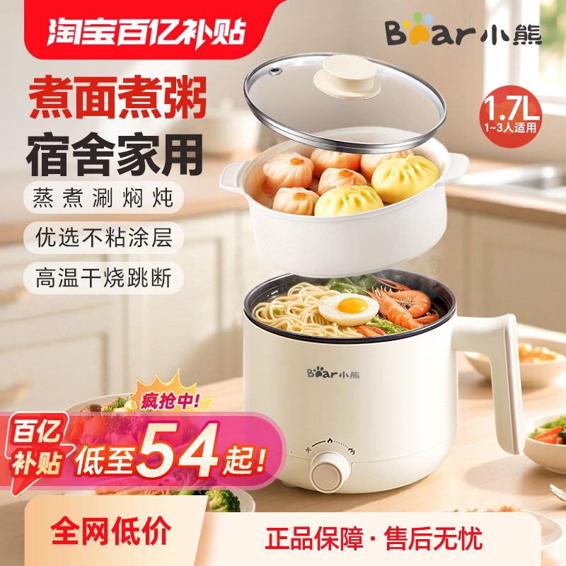 小熊电煮锅小型宿舍电煮锅一人食多功能家用泡面电热锅蒸锅小电锅