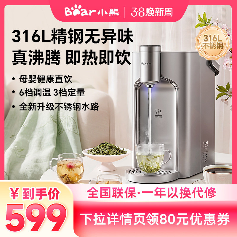 小熊钢钢好即热式饮水机家用桌面台式加热饮水器直饮不锈钢热水机
