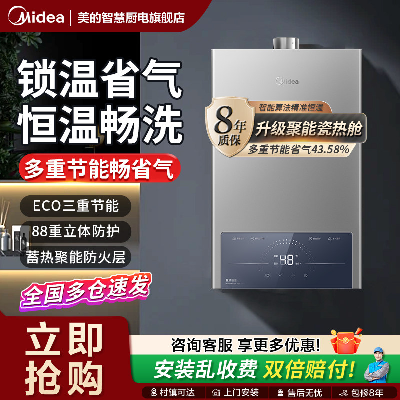 美的燃气热水器恒温家用洗澡14L16升智能节能省气官方旗舰店电器