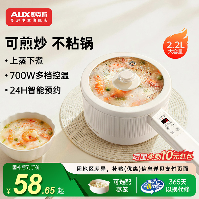 奥克斯电煮锅一体锅多功能小型家用蒸煮辅食锅迷你学生宿舍小电锅