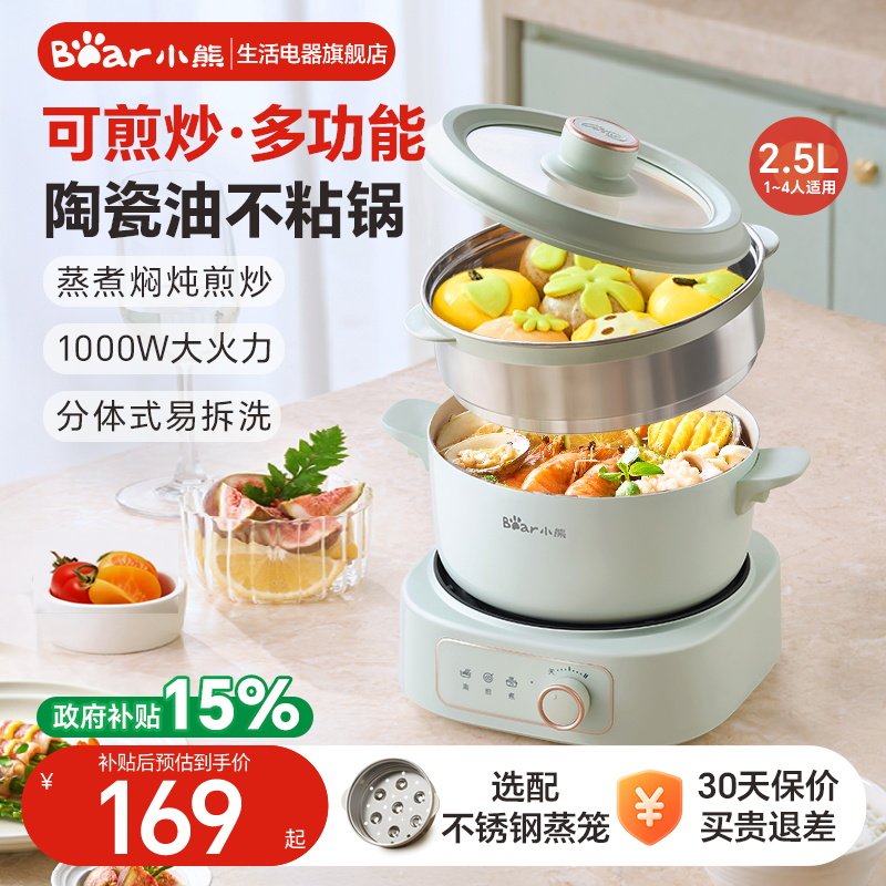 小熊电煮锅家用宿舍多功能小型分体式电火锅蒸锅电炒锅泡面小电锅