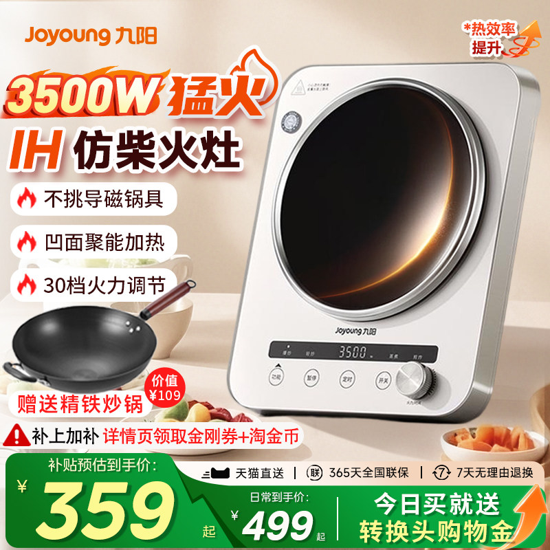 九阳凹面电磁炉家用多功能3500W大火力猛火爆炒菜弧面商用电磁灶