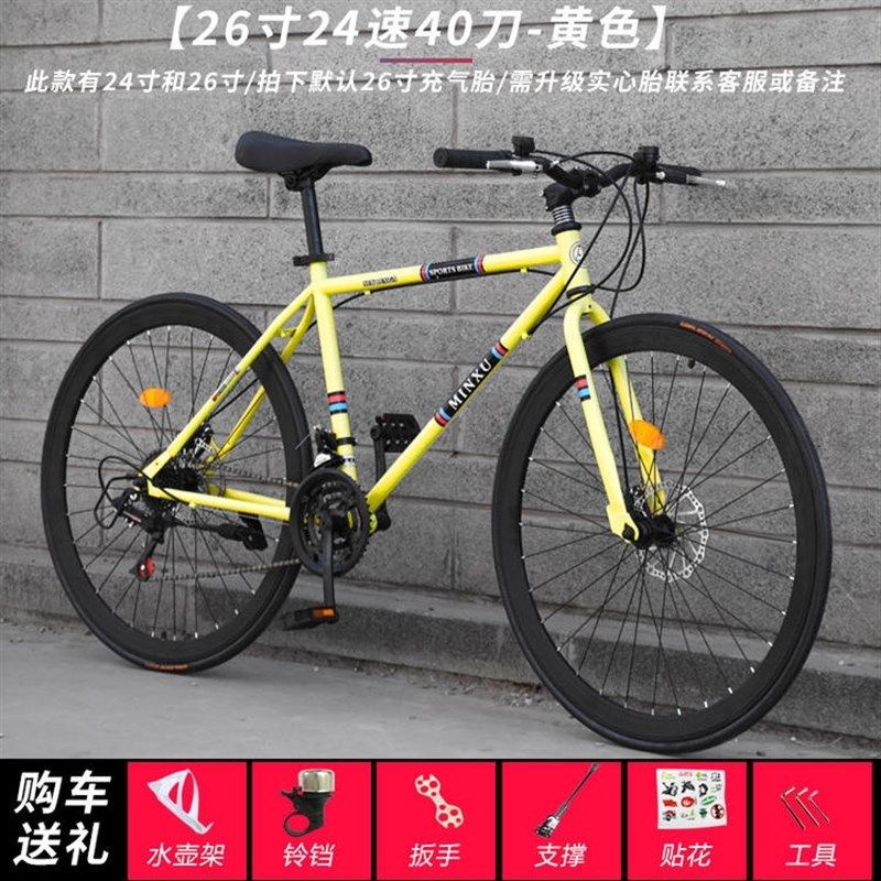 死飞自行车男女款网红公路赛车碟刹学生车26寸公路跑车实心胎活飞