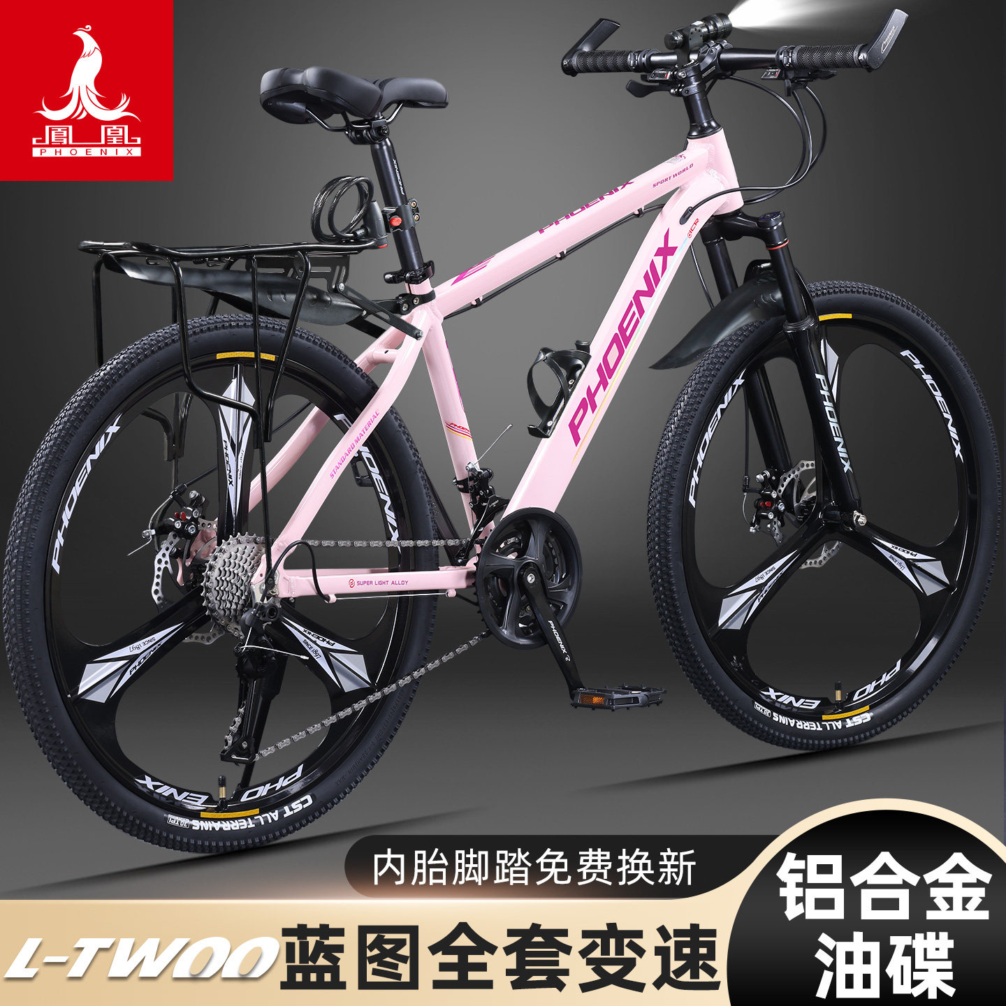 凤凰德鲁山地自行车男款女成人铝合金越野变速油碟青少年公路赛车