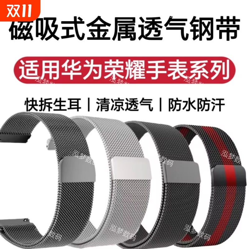 适用华为GT6手表带GT5表带watch5钢带GT2Pro米兰3男款GT4夏天荣耀magic2磁吸亲选Haylou腕带GS4GS3i透气防水