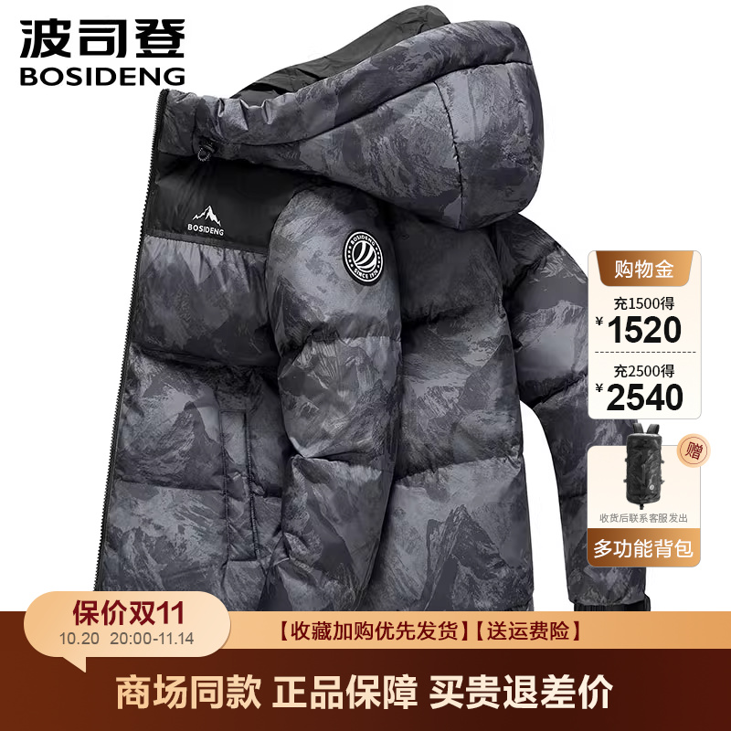 骆驼熊猫系列户外羽绒服男款冬季连帽加厚外套防泼水黑色面包服女