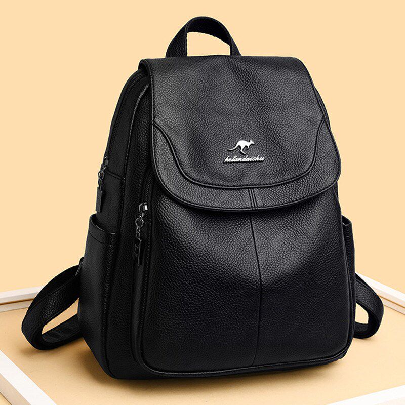 袋鼠威威纯牛皮双肩包女2024新款背包软皮百搭大容量多功能女包