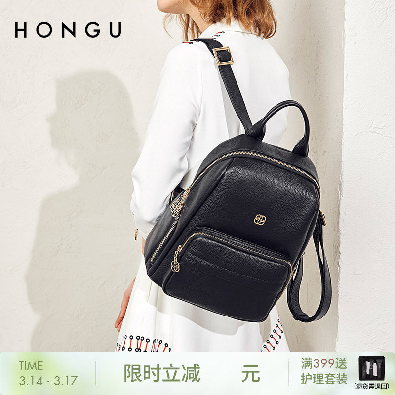 HONGU/红谷女包包新款休闲时尚百搭气质小巧大容量牛皮双肩包