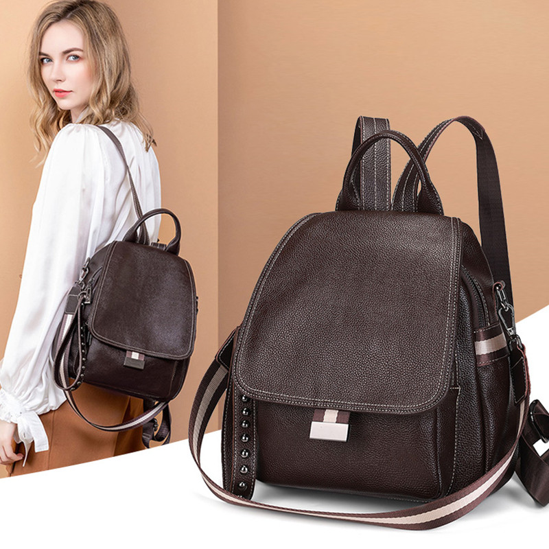 头层牛皮双肩包女包软真皮单肩背包休闲百搭时尚2026新款复古简约