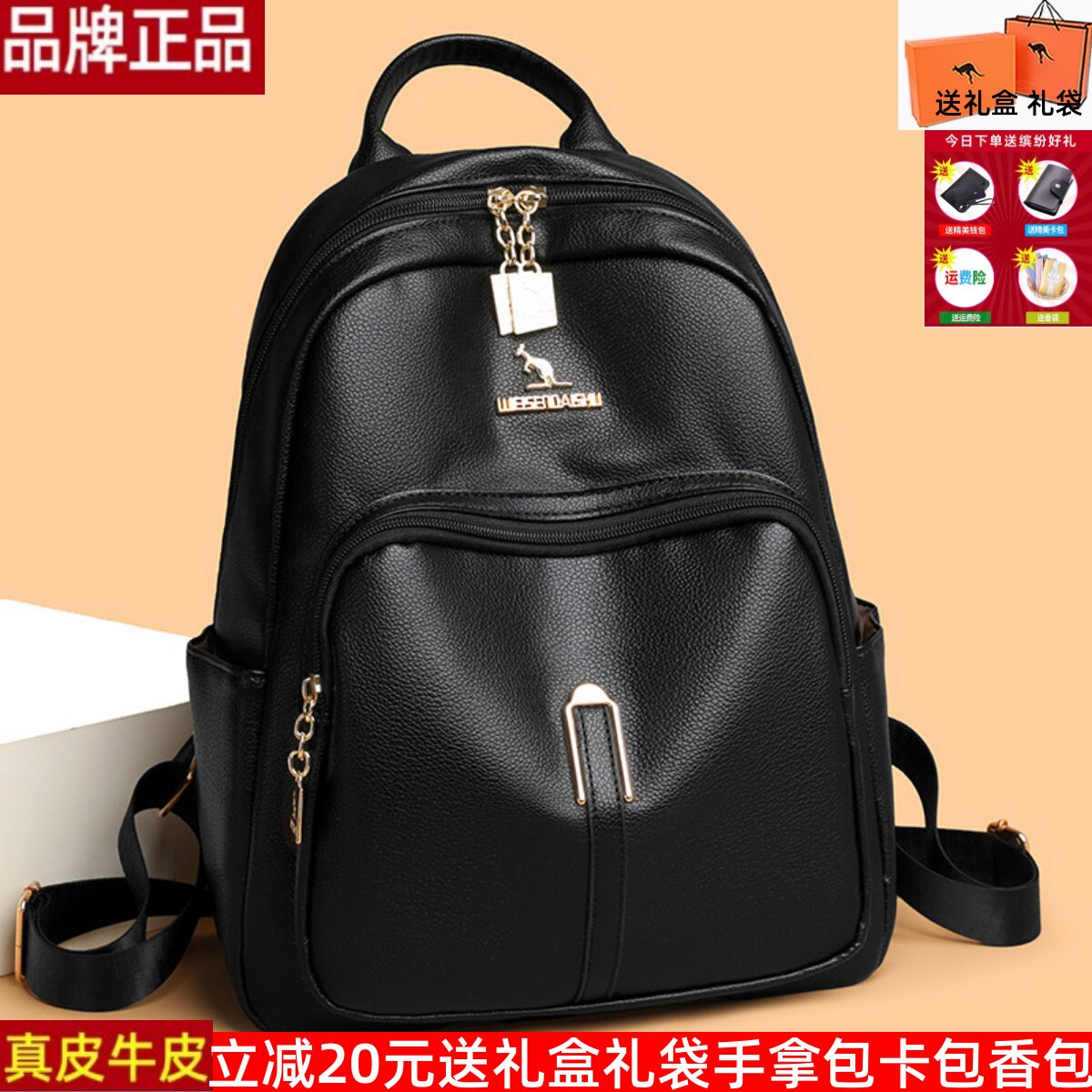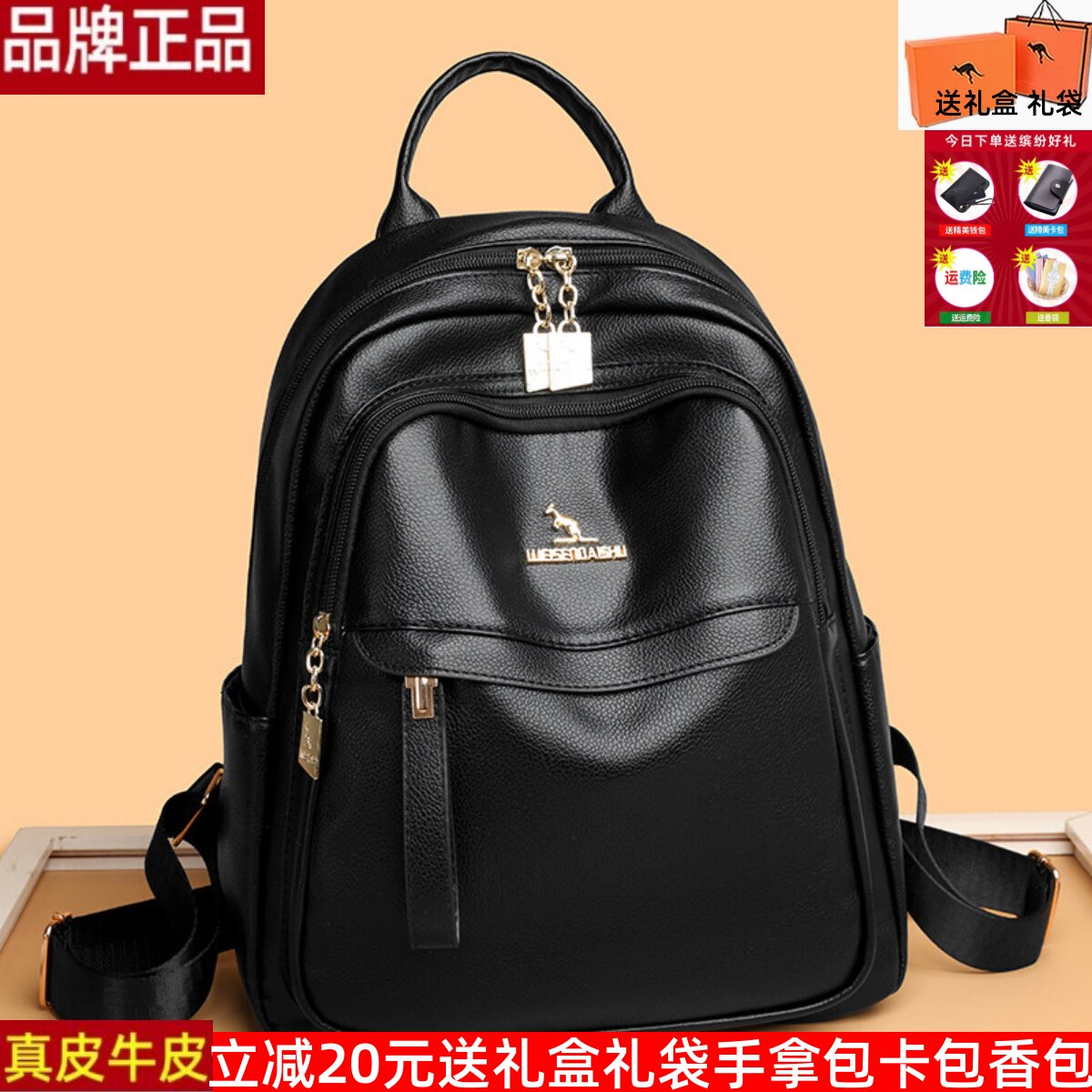 袋鼠真皮女包双肩包背包女2026新款双肩大容量包包旅游轻便软牛皮