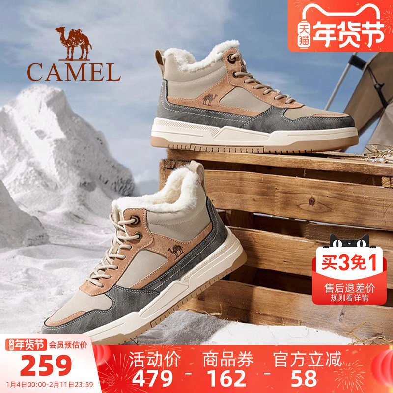 骆驼男鞋冬季登山运动鞋高帮加绒保暖跑步鞋户外休闲棉鞋爸爸礼物