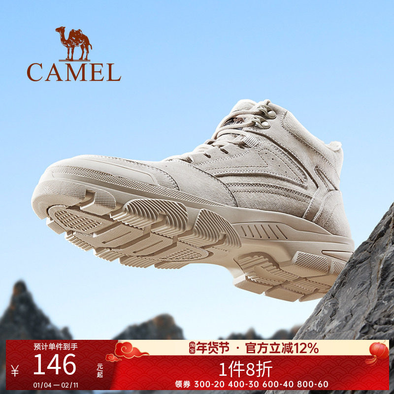 骆驼男鞋户外鞋男士防滑耐磨高帮鞋棉靴工装靴加绒可选保暖休闲鞋