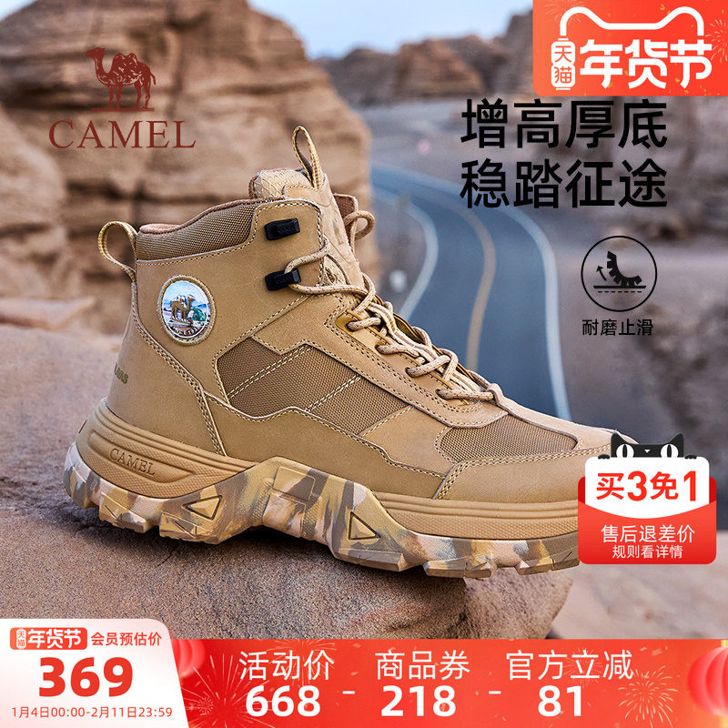 骆驼男鞋户外鞋秋冬新款工装靴复古厚底增高男防滑登山徒步沙漠靴