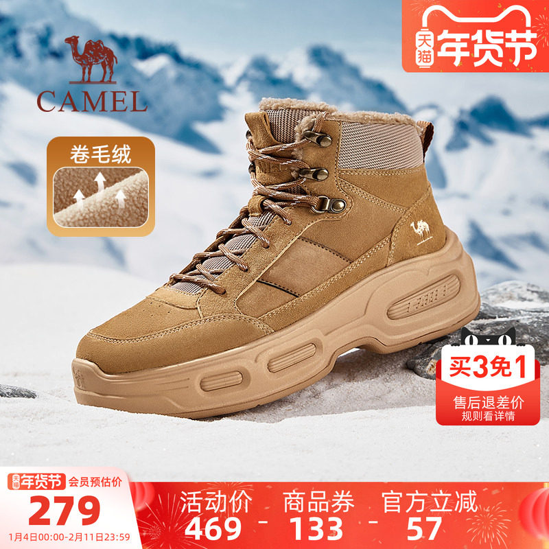 骆驼男鞋户外高帮登山鞋2025冬季新款加绒保暖徒步鞋厚底运动鞋女