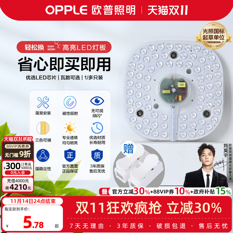 欧普led灯板灯盘吸顶灯管卧室灯芯改造灯条灯珠节能灯泡贴片光源