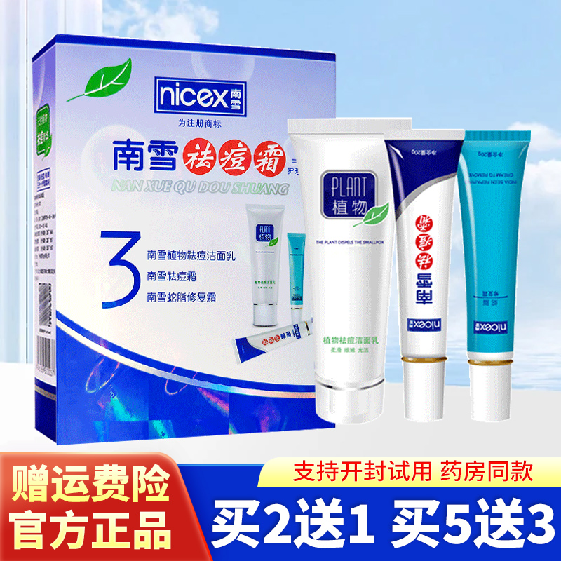 南雪祛痘霜青春痘粉刺黑头淡化痘印南雪祛痘霜三合一套装痘痘正品