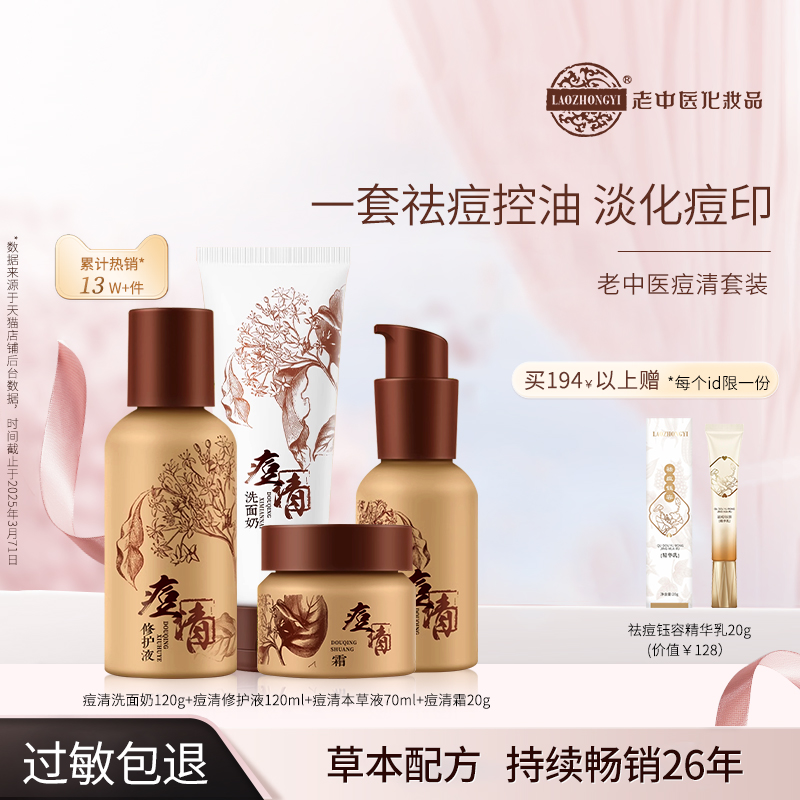 老中医痘清祛痘套装控油去黑头青春痘闭口粉刺淡化痘印官方旗舰店