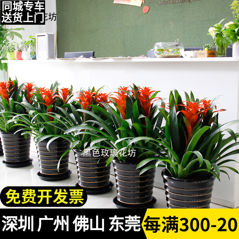 深圳鸿运当头盆栽 凤梨花客厅 室内花卉办公室绿化盆景 开花植物