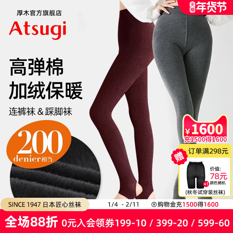 厚木官方旗舰店秋冬加绒加厚500D高腰舒适踩脚裤修身显瘦打底裤袜