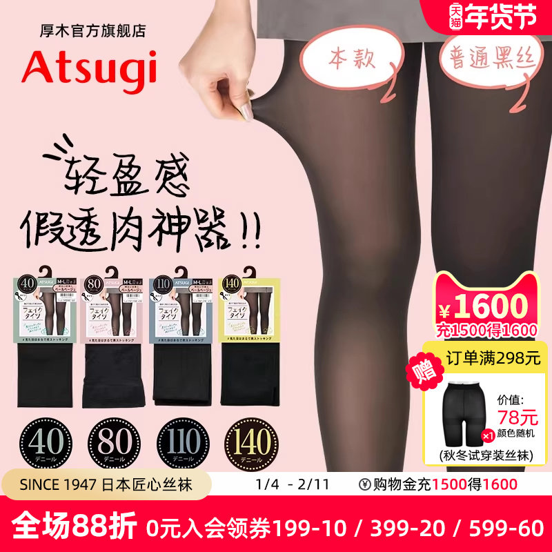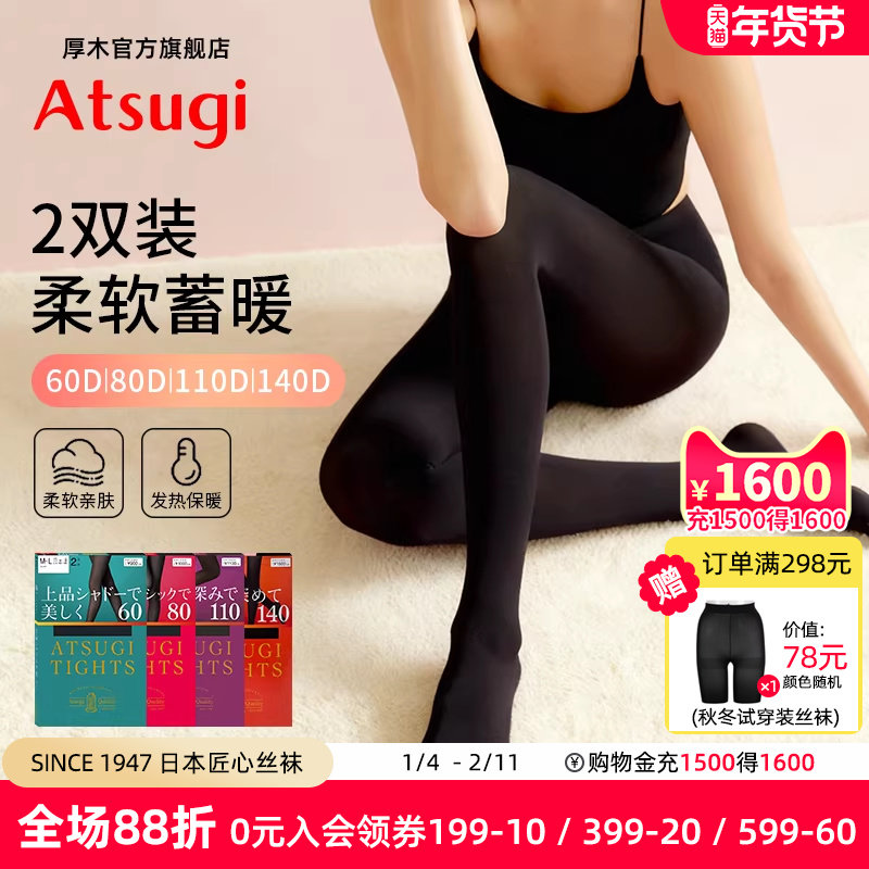 厚木官方旗舰店atsugi丝袜女80D140D中加厚天鹅绒连裤袜黑色2双装