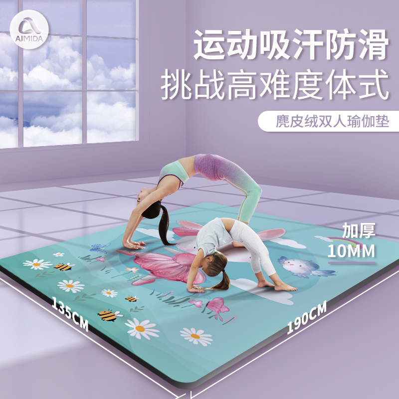 双人瑜伽垫麂皮绒防滑TPE加厚加宽加长儿童练功舞蹈垫子地垫家用