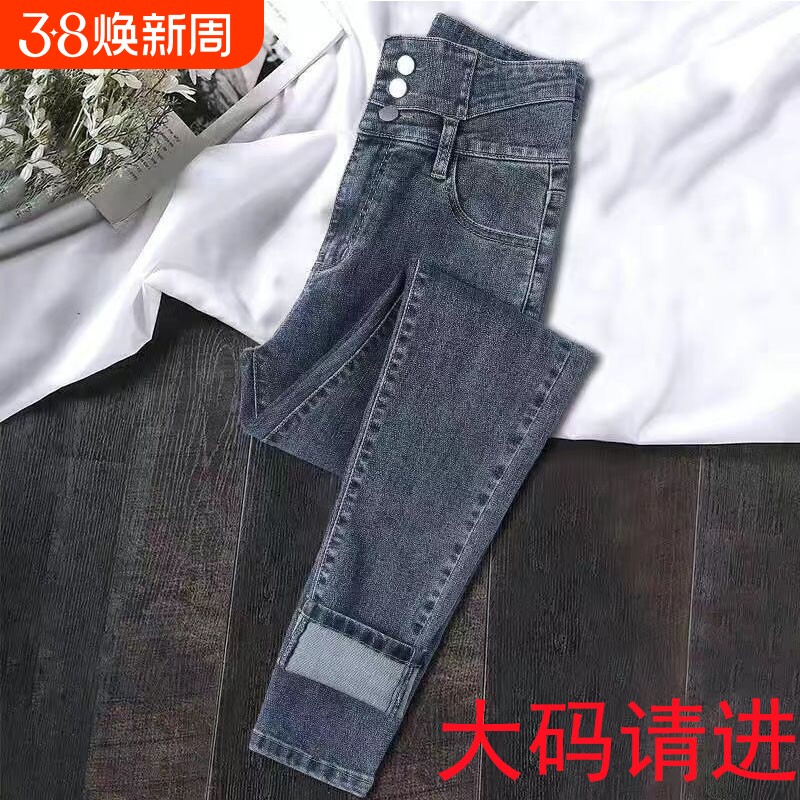 浅色牛仔裤女秋冬新款加绒加厚高腰显瘦大码紧身修身小脚铅笔裤子