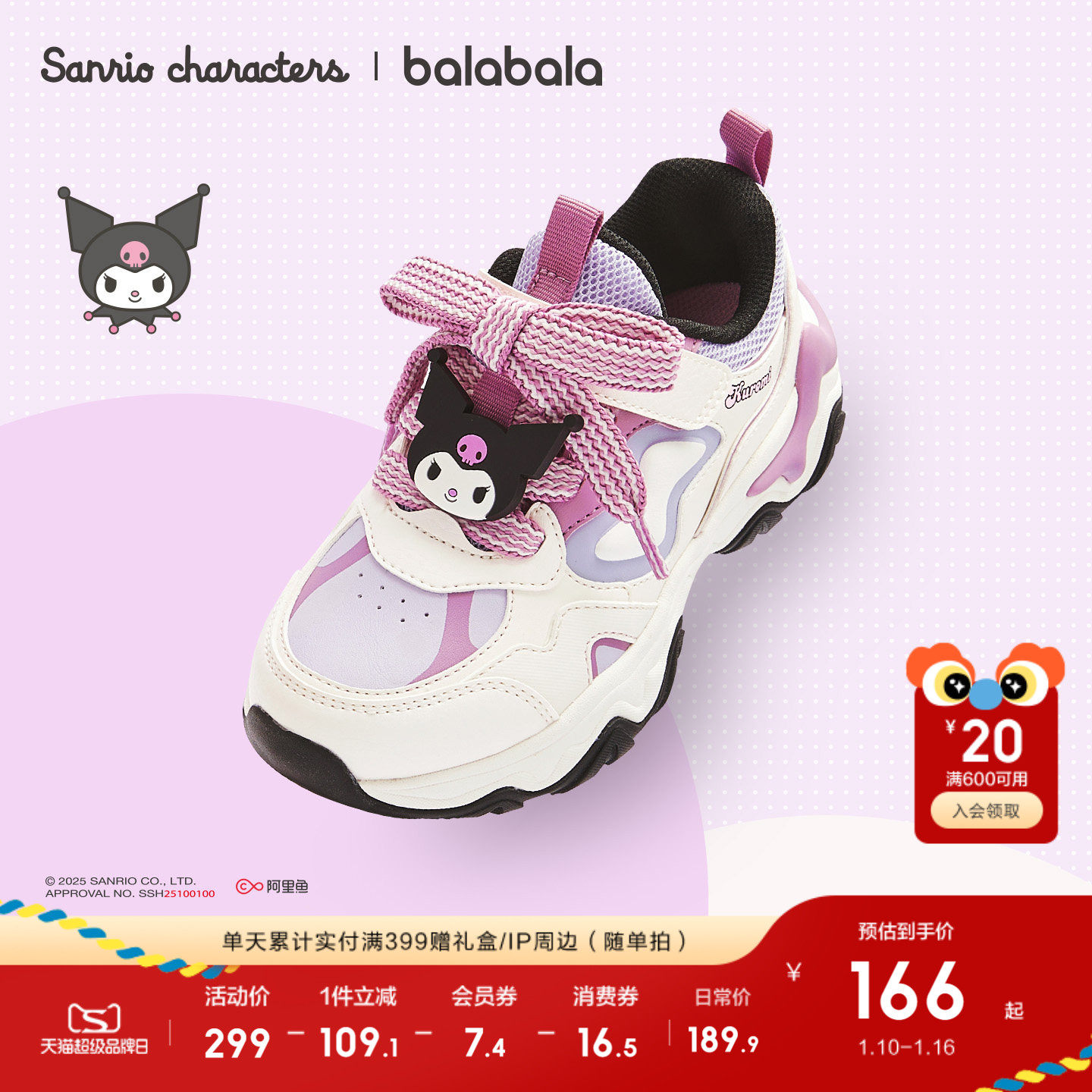 库洛米巴拉巴拉童鞋女童运动鞋春秋老爹鞋2026新款儿童鞋子拜年鞋