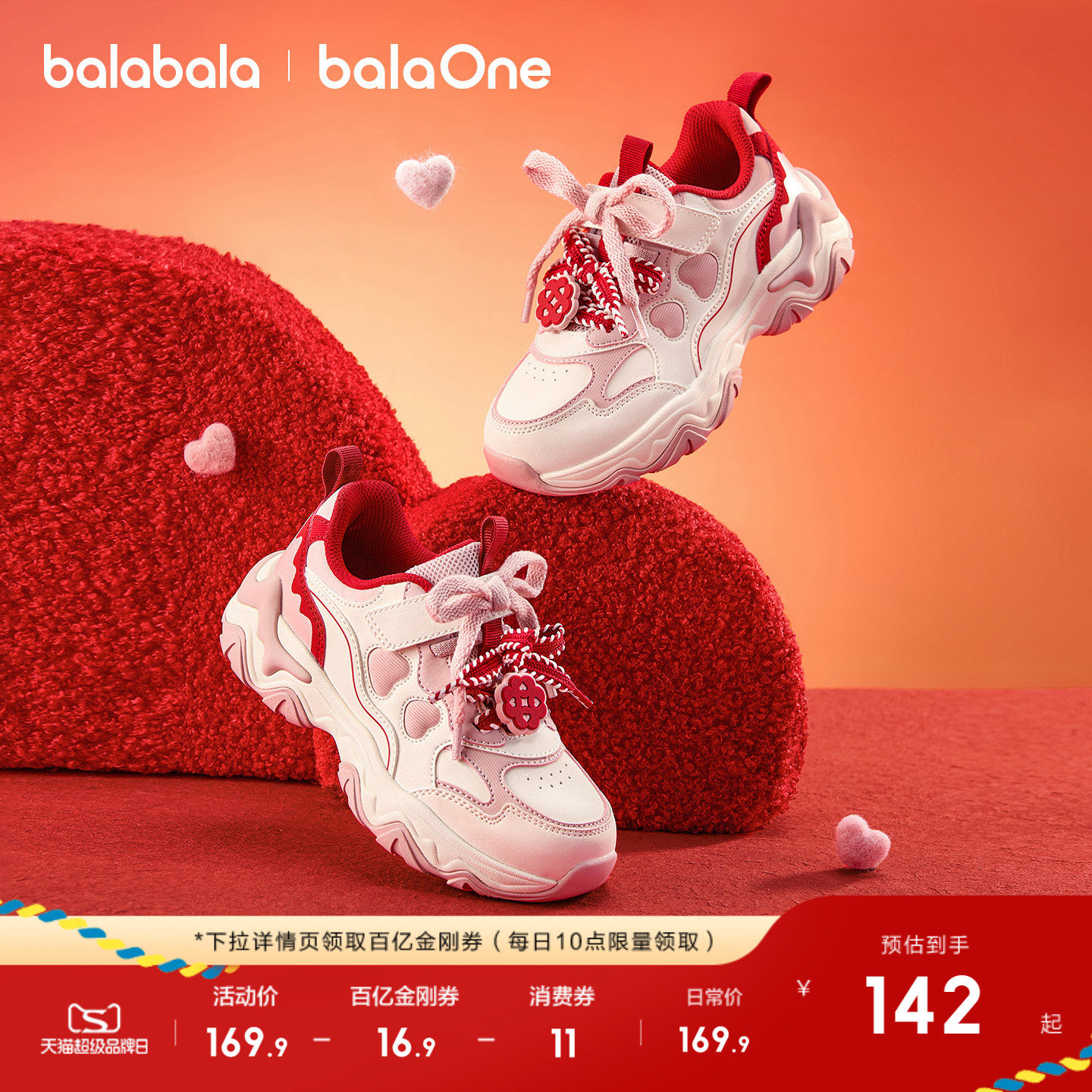 巴拉巴拉童鞋女童运动鞋春秋鞋子2026新款鞋新年鞋子透气红拜年鞋